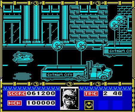 O que Batman – The Movie tinha de especial? Bem, basicamente aquelas mesmas qualidades que transformaram Robocop num clássico do Spectrum: gráficos monocromáticos, porém muito bem desenhados; boa jogabilidade; fases diversificadas com inspiração direta no roteiro/andamento do filme; uma tela de abertura que fazia a gente ter orgulho do próprio computador; personagens grandes e grande fidelidade ao espírito do filme.