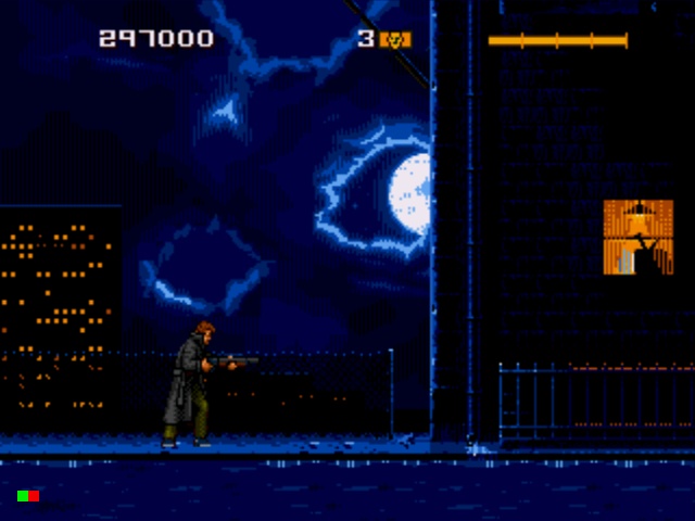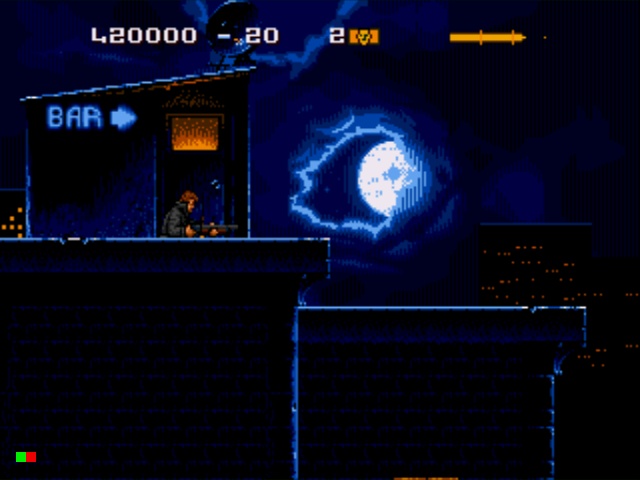A sétima fase é o Tech Noir. No filme, Reese precisava se preocupar “apenas” com o Schwarzenegger vindo do futuro. No game, como pão de pobre sempre cai com a margarina virada pro chão, o herói tem que encarar mais uma leva de fascínoras arruaceiros. Aparentemente, o Tech Noir deixou de ser um bar e virou ponto de encontro de gangs, já que o lugar fervilha de bandidos querendo arrancar o couro de Reese sem nenhuma razão aparente. Infelizmente, não poderei antecipar mais do game para vocês porque não consegui passar dessa sétima fase.