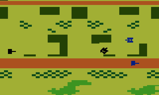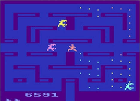 O próximo game da nossa maratona é Amidar, lançado em 1982. O destaque para esse game vai para o fato de ele ter sido um dos primeiros títulos da célebre desenvolvedora Konami. Na verdade, o jogo do Atari é uma adaptação do jogo de mesmo nome lançado pela Konami nos arcades no ano anterior. Apesar disso, realmente não dá pra dizer que estamos diante de um jogo “bom”. O jogador controla um bichinho numa espécie de labirinto (ahhhh, MAIS UM game de bichinhos em labirintos!!!) e essa criatura vai deixando um rastro por onde passa.