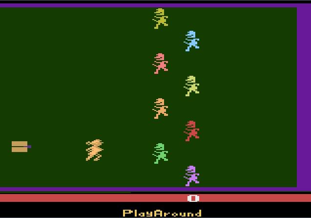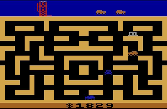 Esse é um joguinho bem legal, e cheguei a tê-lo (num cartucho nacional da CCE) na época em que tive meu Atari. Além de ter uma mecânica relativamente original em termos de Atari 2600, o jogo também se destacava por colocar o jogador no papel do bandido, o que não era comum na época. Se você achava que a bandidagem ativa nos videogames havia começado com a série Grand Theft Auto, melhor pensar de novo!