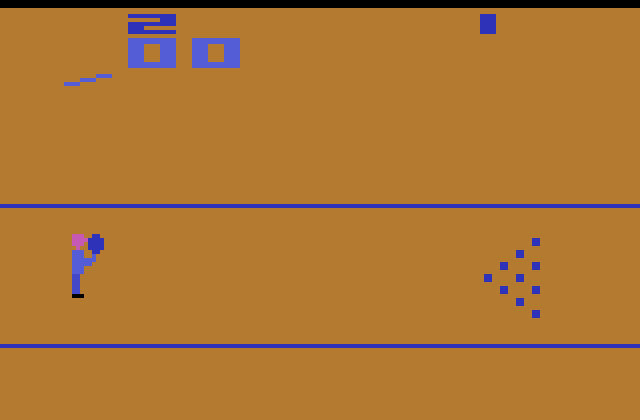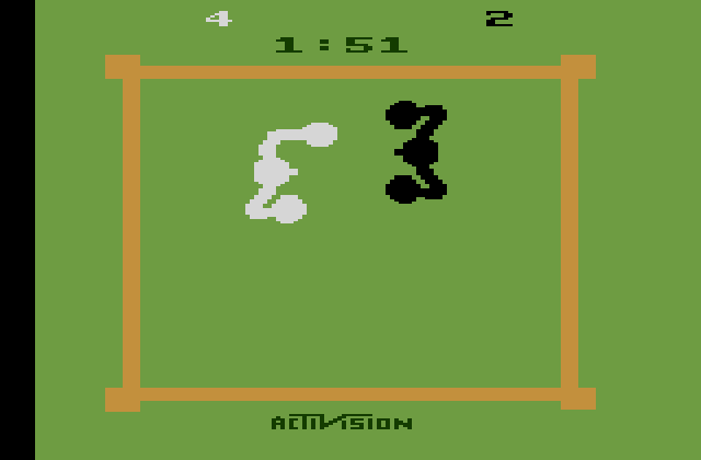 BOXING, lançado em 1980 pela Activision, é uma combinação bem-humorada de criatividade com sérias restrições tecnológicas. Dois lutadores de boxe vistos de cima (que mais parecem duas aranhas gigantes alienígenas) estão lutando num ringue, e seu objetivo, no controle de um deles, é basicamente socar o adversário mais do que ele consiga socar você. O jogo não é muito mais do que isso: dois minutos de troca de socos para um lado e para o outro, com cada lutador levando impressionantes vinte ou trinta socos por minuto e continuando de pé.
