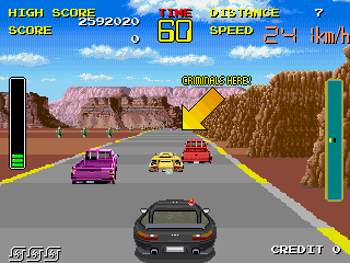 Tecnicamente, o jogo é um Out Run combinado com perseguição policial. Logo se vê que o clássico de corrida da Sega influenciou muito Chase H.Q, seja nos carros estilosos, seja na preocupação com a variedade dos cenários. A novidade aqui ficava por conta do elemento da perseguição policial, que não se resumia a meramente “alcançar” os bandidos dentro do tempo disponível. Nada disso: ao chegar perto do carro do criminoso, é necessário abalroar o veículo várias vezes, até que o automóvel do meliante pegue fogo e ele seja obrigado a se entregar. Um procedimento policial nada convencional, não acham?