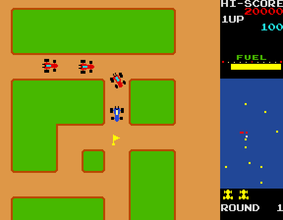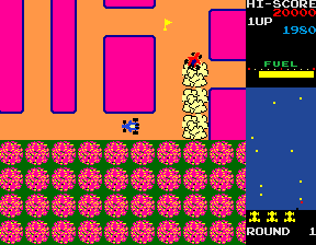 Correr num labirinto, ser perseguido por adversários, Namco … se você achou que tudo isso soa muito parecido com Pac-Man, é porque você está coberto de razão. Rally-X rodava no mesmo hardware de Pac-Man, e as semelhanças entre os dois games são evidentes. Rally-X é uma espécie de variante estilizada do clássico Pac-Man, o que não muda o fato de que se trata de um jogo divertido e interessante.