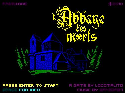 O Locomalito é um programador independente que adora games antigos e, nas horas vagas, faz uns games novos para Windows com visual completamente devotado ao estilo dos antigos jogos de 8 e 16 bits. Uma das últimas criações do cara é esse belíssimo L’ABBAYE DES MORTS (O Mosteiro dos Mortos), cujo visual reproduz com grande fidelidade o visual dos games do saudoso microcomputador britânico ZX Spectrum.