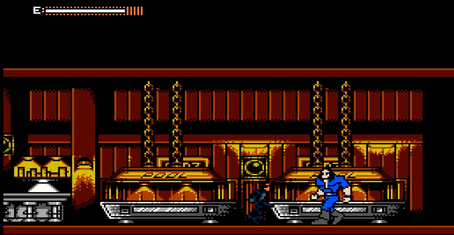Agora, revisitando o Terminator 2 do NES depois de tantos anos, tive uma impressão bem diferente. De fato, não é um jogo ótimo nem memorável, mas é bem mais legal do que eu lembrava. O principal mérito do game é sua fidelidade ao filme. Além de as cinco fases representarem bem as sequências mais importantes da película, o jogo ainda tem o mérito de ser fiel à mensagem do filme. Assim como o personagem de Schwarzennegger no filme é instruído a “deixar de ser um exterminador” e proibido (pelo jovem John Connor) de matar pessoas, o jogador também precisará atravessar o jogo inteiro sem dar tiros fatais em ninguém.