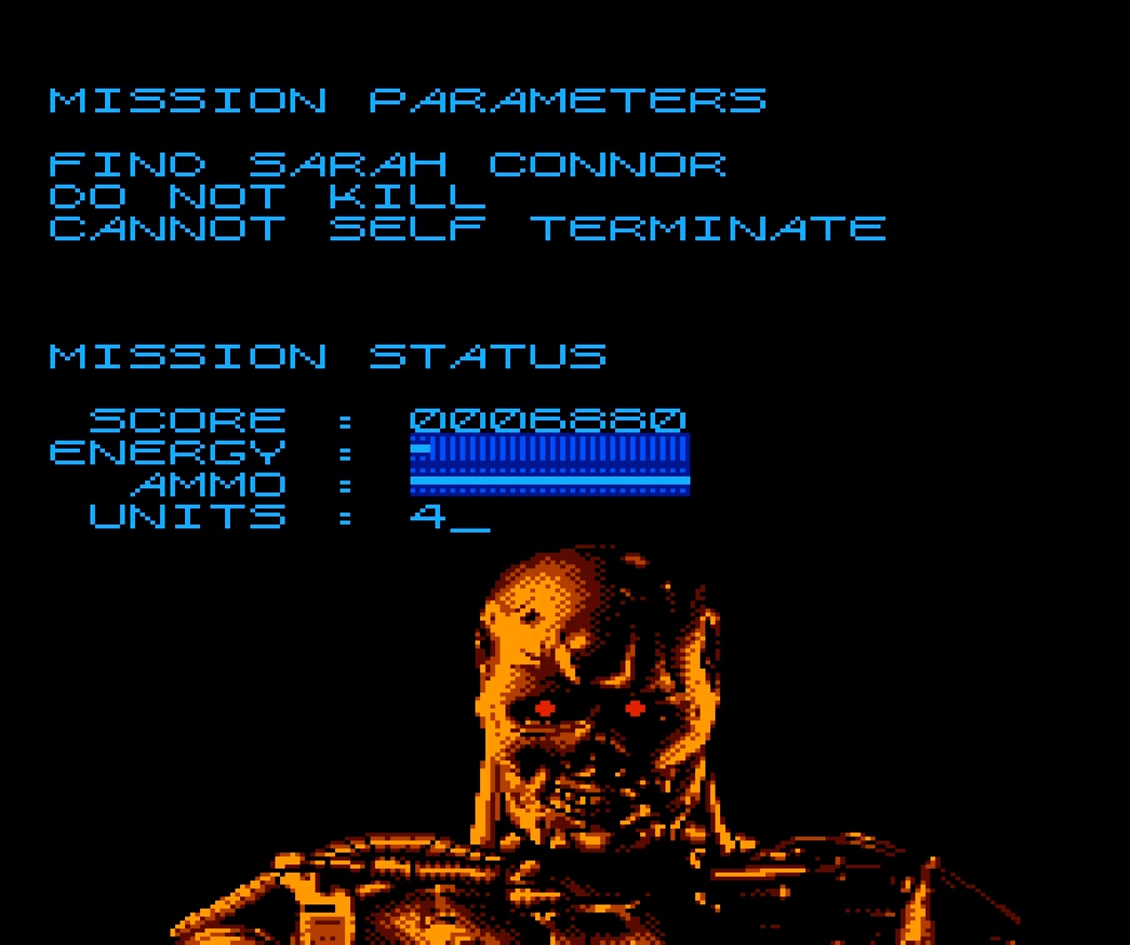 THE END! Chegamos ao final da versão Nintendo 8-bits de um dos maiores clássicos do cinema. Hasta la vista, baby!