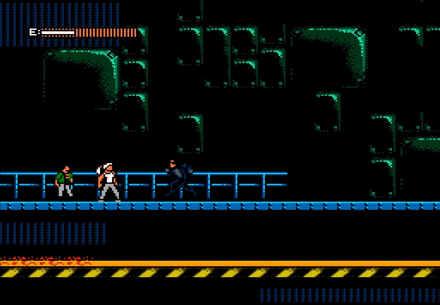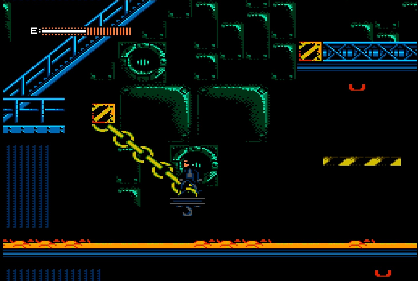 A parte realmente difícil da fase é a dificuldade de entender para onde se deve ir. A presença de aço derretido por toda parte também contribui para o clima de inferno na Terra. Tenha em mente que qualquer bobeira aqui significa a perda imediata de uma vida. Errou um pulo e caiu no aço derretido? Você não “perde energia”, você MORRE! Não há muito o que fazer a não ser dominar o mapa da fase por meio da boa e velha tentativa-e-erro (leia-se: morrer várias e várias vezes, feito um condenado).