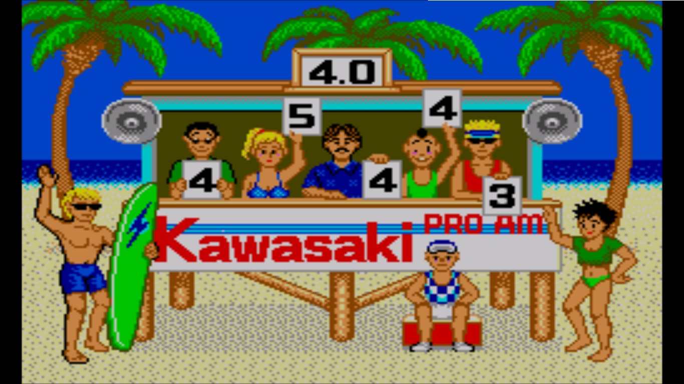 MEGA DRIVE: covardia, né? É claro que essa é a melhor versão de Out Run lançada para consoles caseiros na época. O resultado ficou excelente, embora ainda com algumas simplificações em relação ao original do arcade. Mas, se você não for muito chato, dá pra dizer que a versão do Mega não fica devendo quase nada para o arcade em termos de visual e jogabilidade. As músicas soam maravilhosas também, e rola aquele “feeling” de game da Sega em tudo (gráficos, sons, gameplay, etc), da tela de abertura até o final de cada partida. Se você quer realmente se divertir jogando Out Run – e não meramente se envolver numa escavação arqueológica retrogamer – então a versão do Mega Drive é a única que eu recomendo (além do original do arcade, é claro). Mas não custa lembrar que essa versão – assim como a do PC-Engine – só saiu em 1991, quatro anos depois da versão do Master System, numa época em que o interesse dos jogadores por Out Run já não era mais o mesmo.
